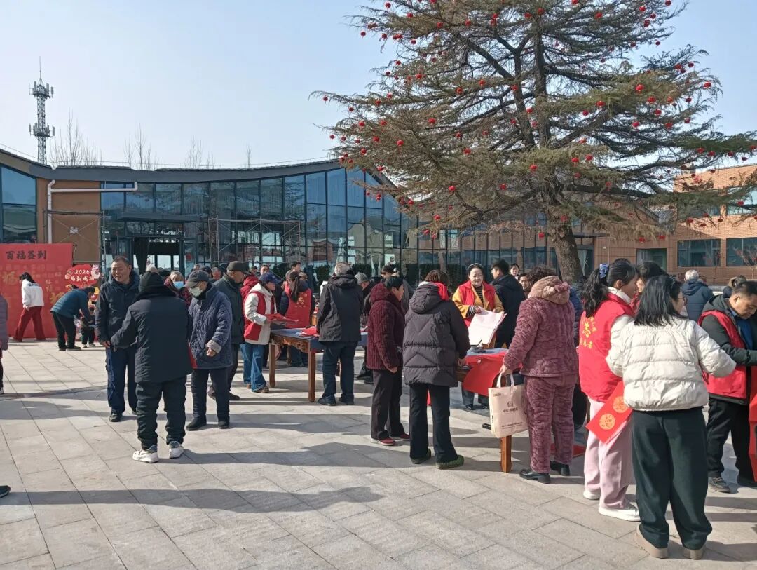 志愿者现场挥毫泼墨,运笔如飞,将美好的祝福融入一幅幅春联之中,现场气氛热烈,大家都沉浸在浓浓的节日氛围中,当场赠送对联和“福”字500余份,得到群众纷纷称赞。