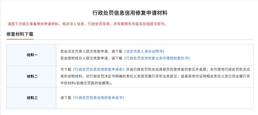1. 打开“信用中国”网站(网址:https://www.creditchina.gov.cn/),也能长按指南里的二维码直接跳转;2. 输入自己公司/主体的名称,或者统一社会信用代码,点“搜索”找到对应的主体信息;3. 找到“行政管理”栏目,点下面的“行政处罚”,就能看到相关的处罚记录;4. 看处罚信息右上角的“在线申请修复”按钮:红色就能申请,灰色就是还没到能申请的最短公示期,得再等等。- 要是老板(法定代表人)自己办,下载《法定代表人身份证明书》;- 要是委托别人办,下载《行政处罚信用修复业务办理授权委托书》;- 必须准备:能证明罚款交完、责任都履行好的材料(比如交罚款的收据),或者填好《行政处罚信息信用修复申请表》让处罚机关盖章同意;- 还要下载《行政处罚信息信用修复承诺书》,按要求填好。1. 回到处罚记录页面,点红色的“在线申请修复”按钮;2. 跟着页面提示填信息:比如公司名称、统一社会信用代码、处罚决定书编号、哪个部门罚的、罚的日期和依据,填完提交就行。1. 打开“信用中国”网站,点右上角的“信用修复”;2. 点左上角“修复进度自助查询”下面的“行政处罚信息信用修复”;3. 输入查询码,就能看到申请进度:比如企业名称、处罚文书号、申请时间、审核状态和意见。修复要经过市里初审(最多3个工作日)、省里复审(最多3个工作日)、国家终审(最多4个工作日),全部通过且满了最短公示期,就能撤掉公示啦。如果是市场监督管理局做出的处罚,在市场监督管理局申请修复后,“信用中国”会同步修复结果,不用再跑一次了!